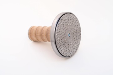 Presse de gravure au roulement à billes pour l'impression de formats moyens et grands. La grande Sláma Presse 150 est un outil en acier inoxydable avec une poignée en bois permettant de rajouter des poids supplémentaires. Elle convient pour l'impression des techniques de taille d'épargne, taille douce et lithographie. Elle est principalement utilisée pour l'impression de formats plus grands que le A4. Cette version de la presse contenant 150 billes est destinée à l'impression sur papier fin (250 g max ). Elle convient également à l'impression sur tissu. La construction de la presse permet de choisir entre deux options de prise – soit la poignée en bois, soit le pommeau métallique. Pour plus d'informations sur le changement de prise suivez ACCUEIL > LE PROCESSUS.