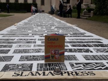 The Slama Hand Press has been used by teachers and students of Art School Mšeno (Czech Republic) to create a record-breaking 116 square-metre print. Printed on canvas using laminated boards a total of 560 matrices were used. “The hand press faced the challenge with great success while withstanding enormous pressure in the process”, said Head of the Art School Čeněk Hlavatý praising the hand press.